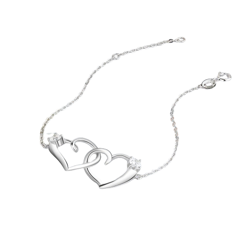Sterling Silver Intertwined Heart Bracelet with Cubic Zirconia