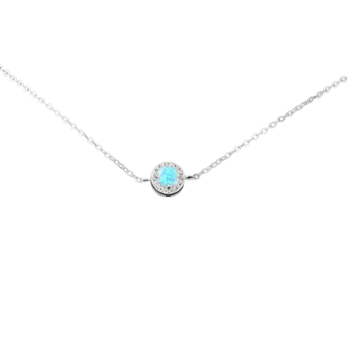 Round Blue Opal Stone Sterling Silver Chain Bracelet