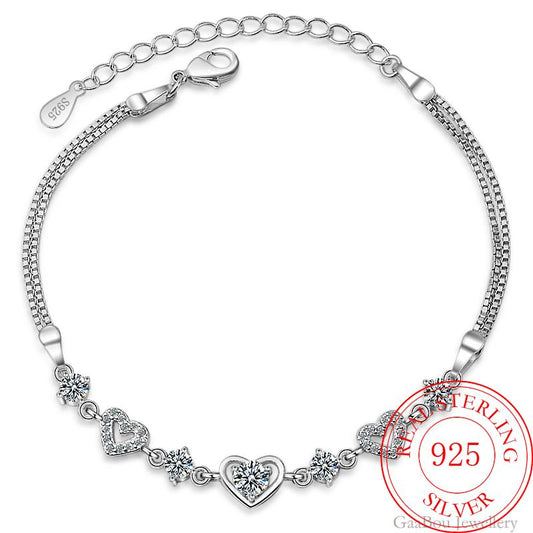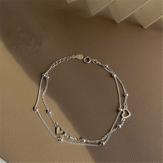 925 Sterling Silver Double Layers Heart Charm Bracelet
