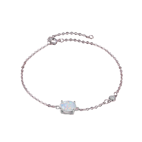 Simple Sterling Silver Oval Opal Chain Link Bracelet